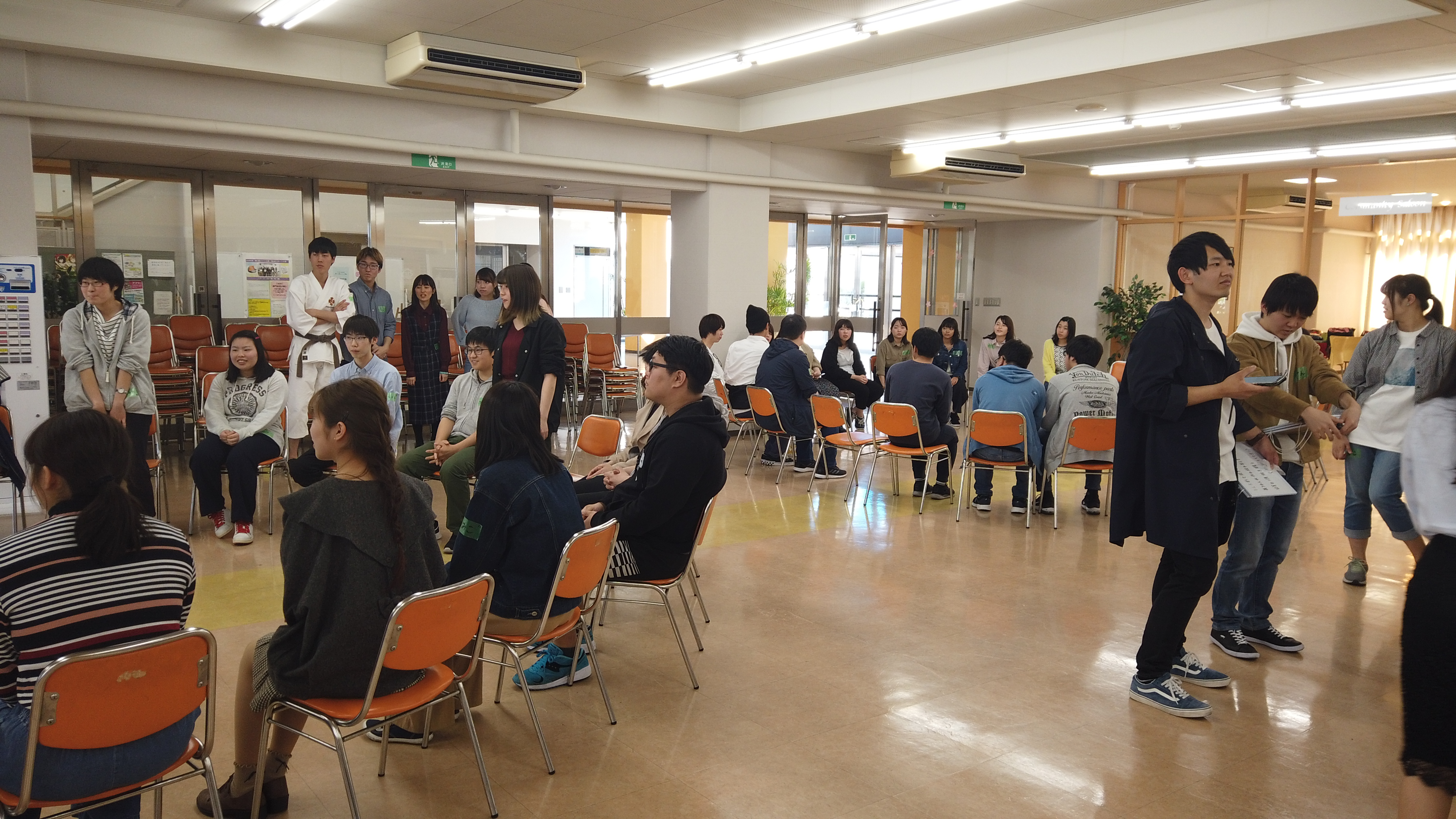 甲友会は、大学に在籍する全学生が所属する組織です。現在3回生が中心となり執行部を運営していますが、主なイベントは、「新入生歓迎会」「紅葉祭」です。学内では「オープンキャンパス」の「キャンパスツアー」を始め、会場創りなどのサポートもしており、学外では「アピアの夏祭り・ハローウィン」などにも参加しています。11月3日の「紅葉祭」は年間の最大行事で、多くのお客様に来て頂けるよう、よしもとお笑い芸人「さや香」お笑いステージを始め、たくさんの企画を準備しています。将来的には大学祭を2日間に渡って開催出来るように、組織力を上げていきたいと思っています。今後は学生広報部やSLP(学生リーダープログラム)とも連携し、大学での「学生生活」を大いに盛り上げていこうと思います。