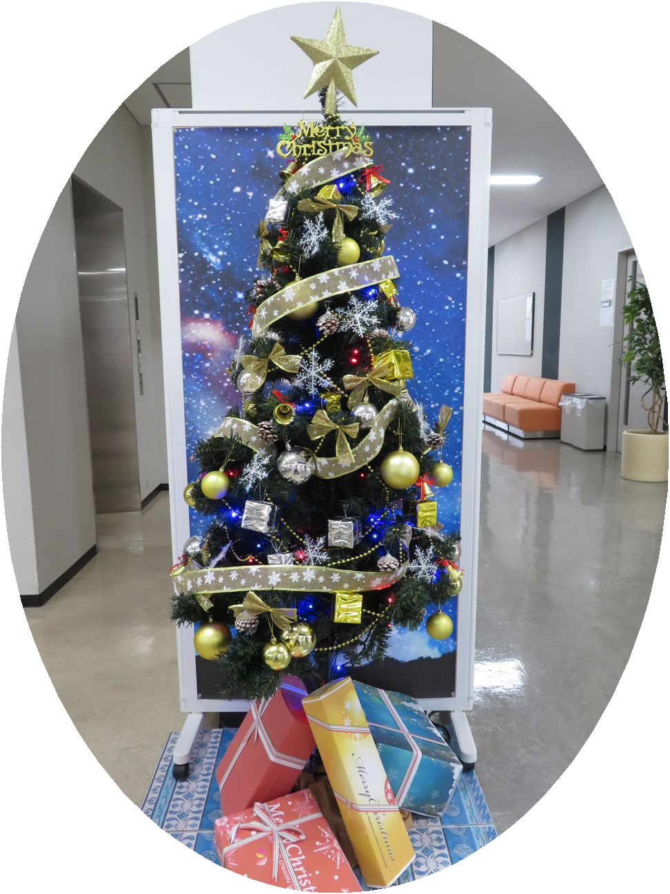 3回生も就職活動の準備で日に日に忙しくなってきました。そんな学生の皆さんに「元気に頑張ってもらいたい」との思いを込め、今年もキャリアサポートセンターに大きなクリスマスツリーを飾りました。また、昨年好評だった栄養学科4回生用「管理栄養士(国試)用の受験勉強コーナー」を今年もホール内に設けましたので気軽に利用してください。