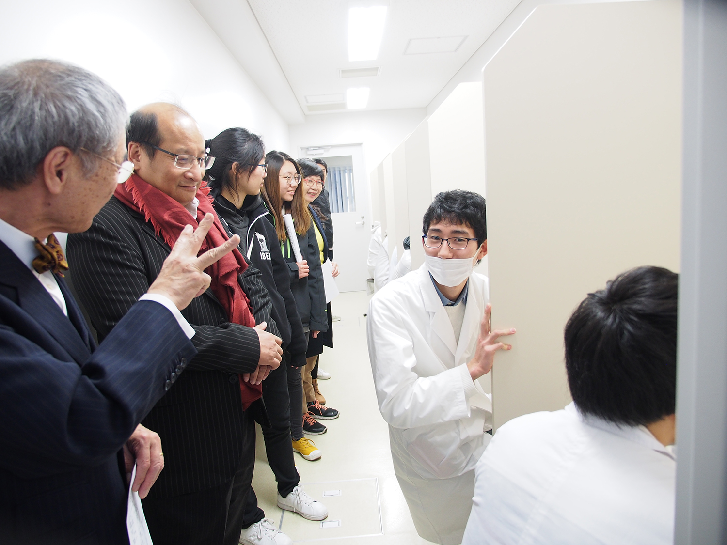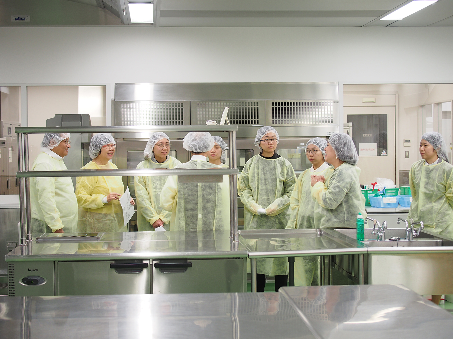 本日は、栄養学部の施設を見学されたほか、本学の大橋教授の「食品官能評価実習」と村中助教の「ライフステージ栄養学実習」の授業も参観。給食経営管理実習室では、日本の進んだ設備に学ぶところが多いと感心しておられました。張教授は台湾のHACCPの審査委員もしておられるとのことです。学生のみなさんも授業の様子を興味深げに見ていました。