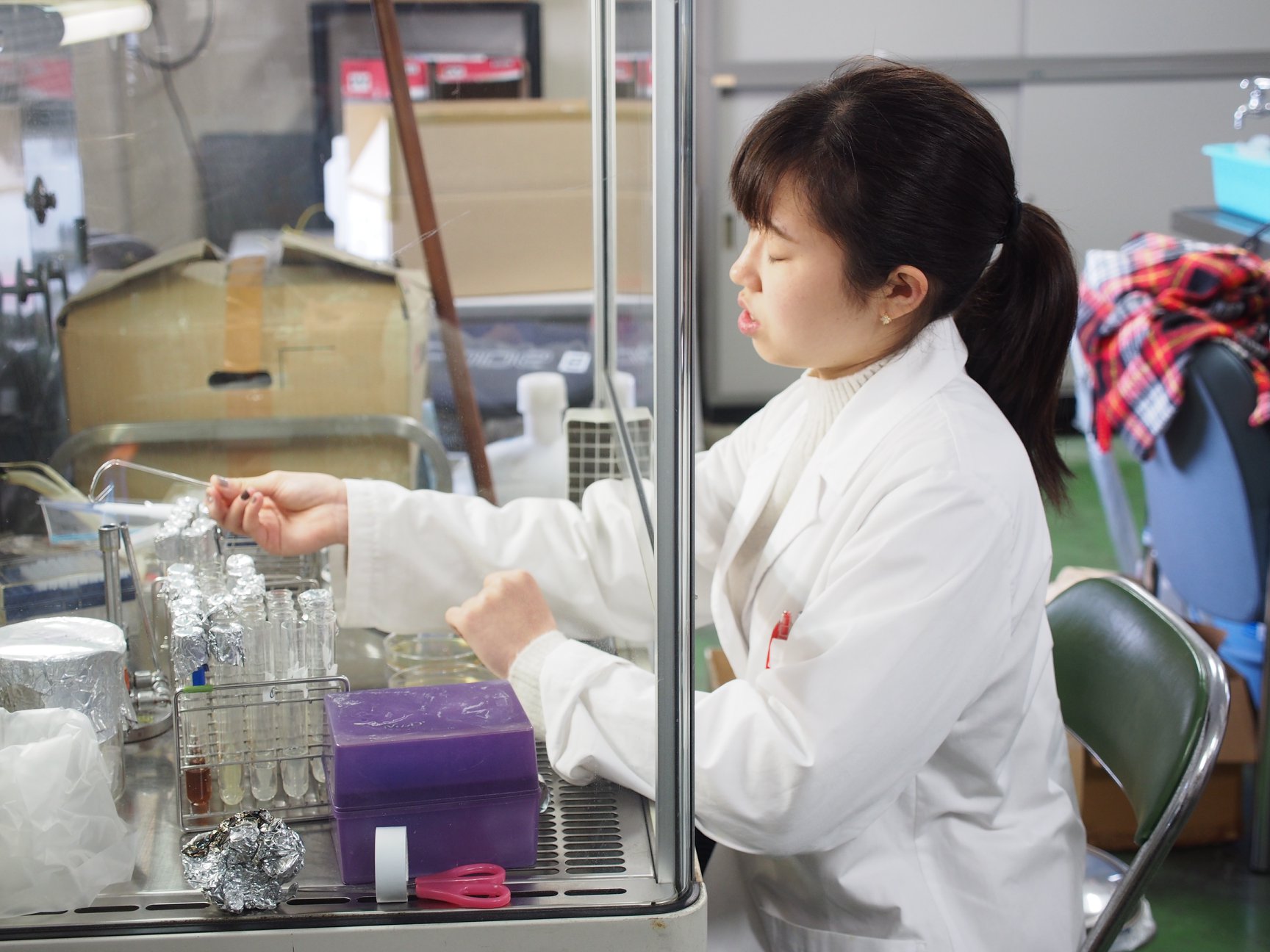 ゼミでは、食用に使う菌を培養する実験に取り組んできました。そして、培養実験も大詰めを迎えたので、ようやく卒業論文に取りかかれそうです。実験に取り組んできた日々が卒業後の素敵な思い出となるように、今日もゼミ仲間の小村華穂さんと奮闘中です。