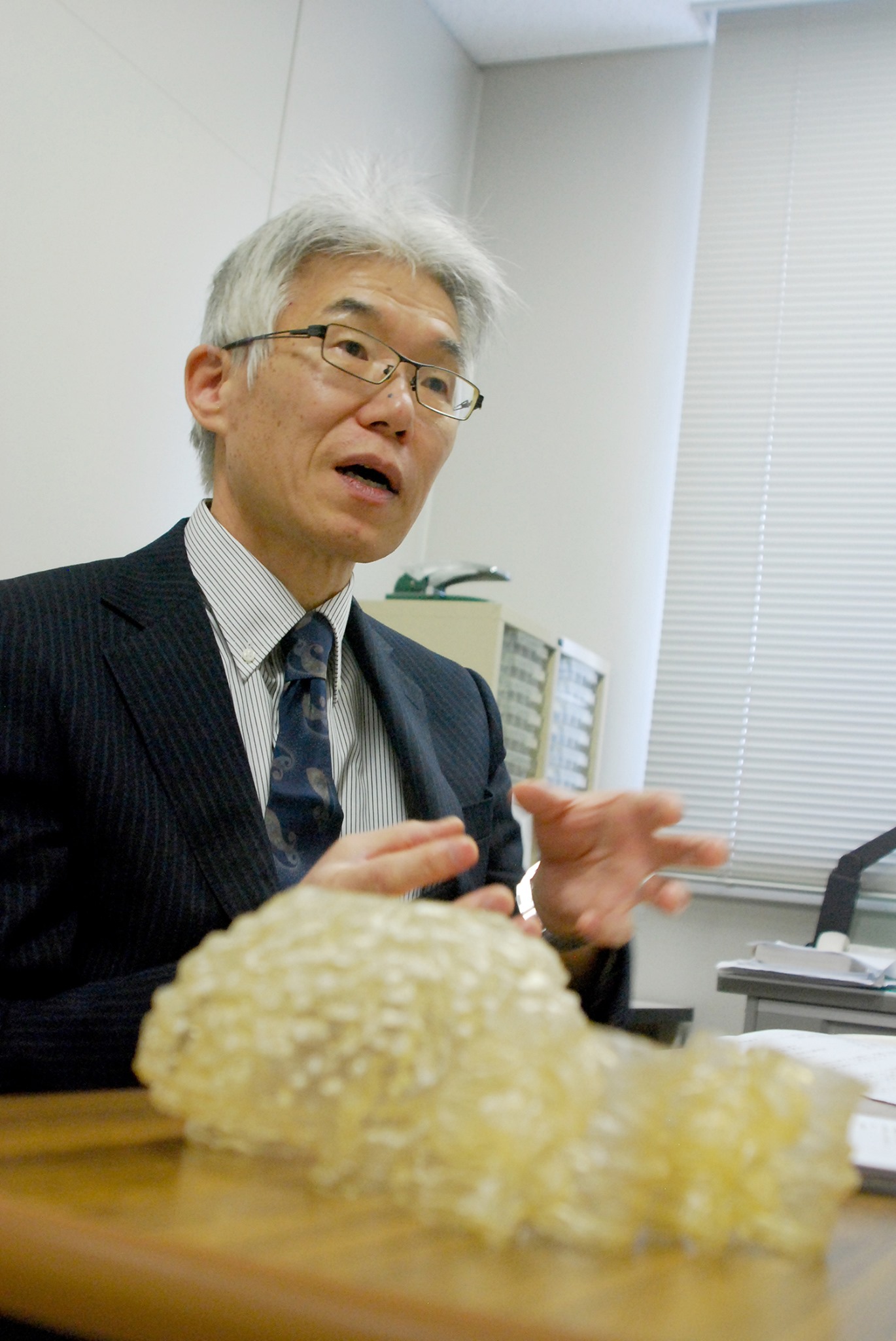大阪教育大学・教育学部を卒業後、企業に就職しました。その後、大阪府立産業技術総合研究所に入所しました。研究所では、紫外線で硬化する樹脂を用いた「光造形」の技術開発プロジェクトに参加し、「光造形」を特許化しました。この技術は、昨今話題の3Dプリンターに利用されています。つい最近生まれた技術だと思っている方がいらっしゃるかもしれませんが、実は35年ほど前のものなのです。