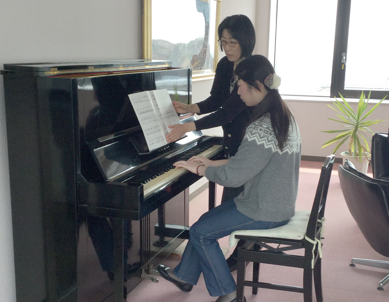 また、受講生へのささやかなおもてなしとして、ピアノ部の学生と栄養学部フードデザイン学科・森田久仁子准教授が奏でる音色に耳を傾けながらお昼のひと時をお過ごしていただくティーパーティが展望ラウンジで行われました。