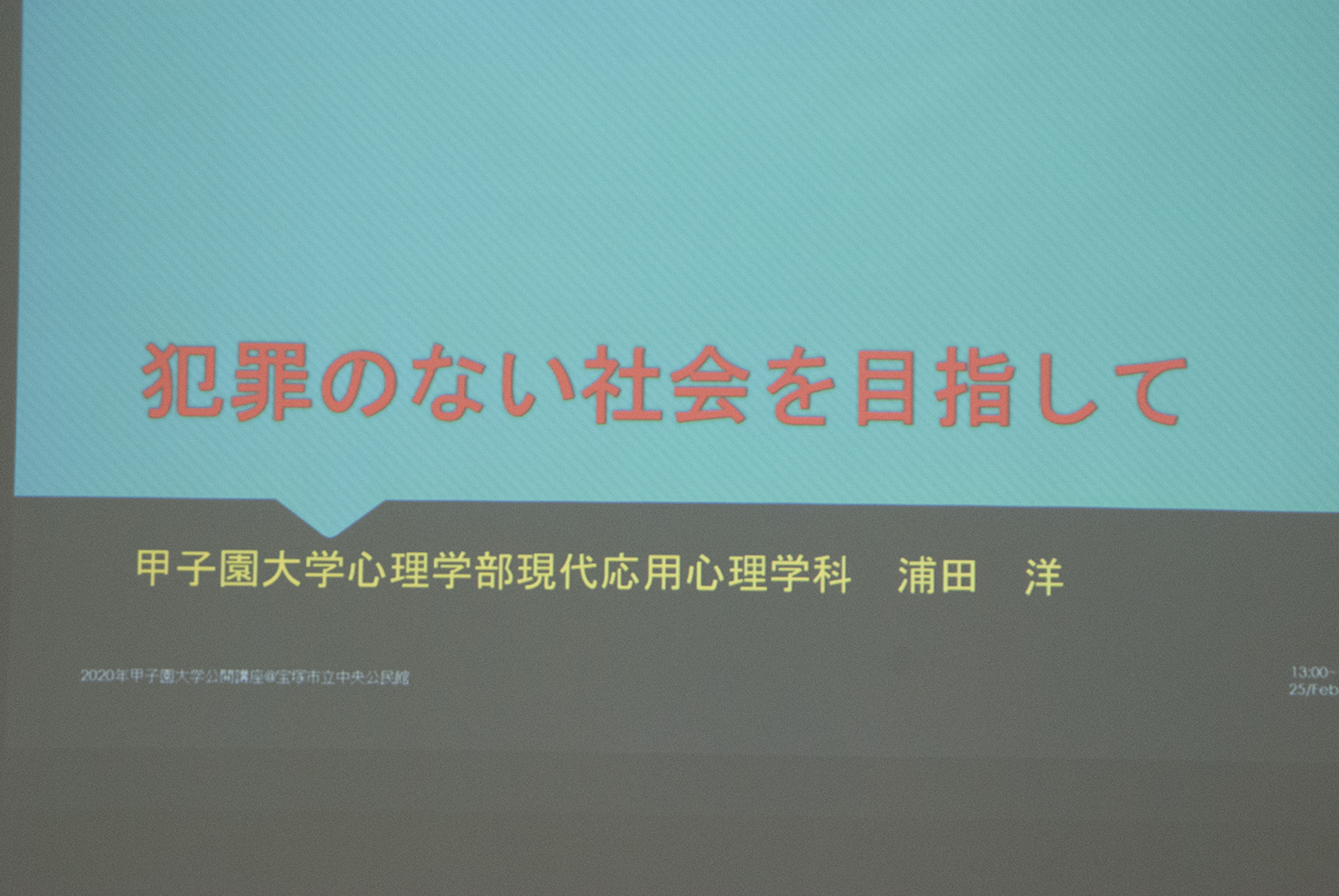 2月25日(火)、『心身ともに美しく』をテーマに、心理学部現代応用心理学科・市川祥子助教の「ファッションと心理学~色を楽しむ:服の色で印象を変えよう~」、心理学部現代応用心理学科・浦田洋教授の「犯罪のない社会を目指して」が宝塚市立中央公民館で開催されました。