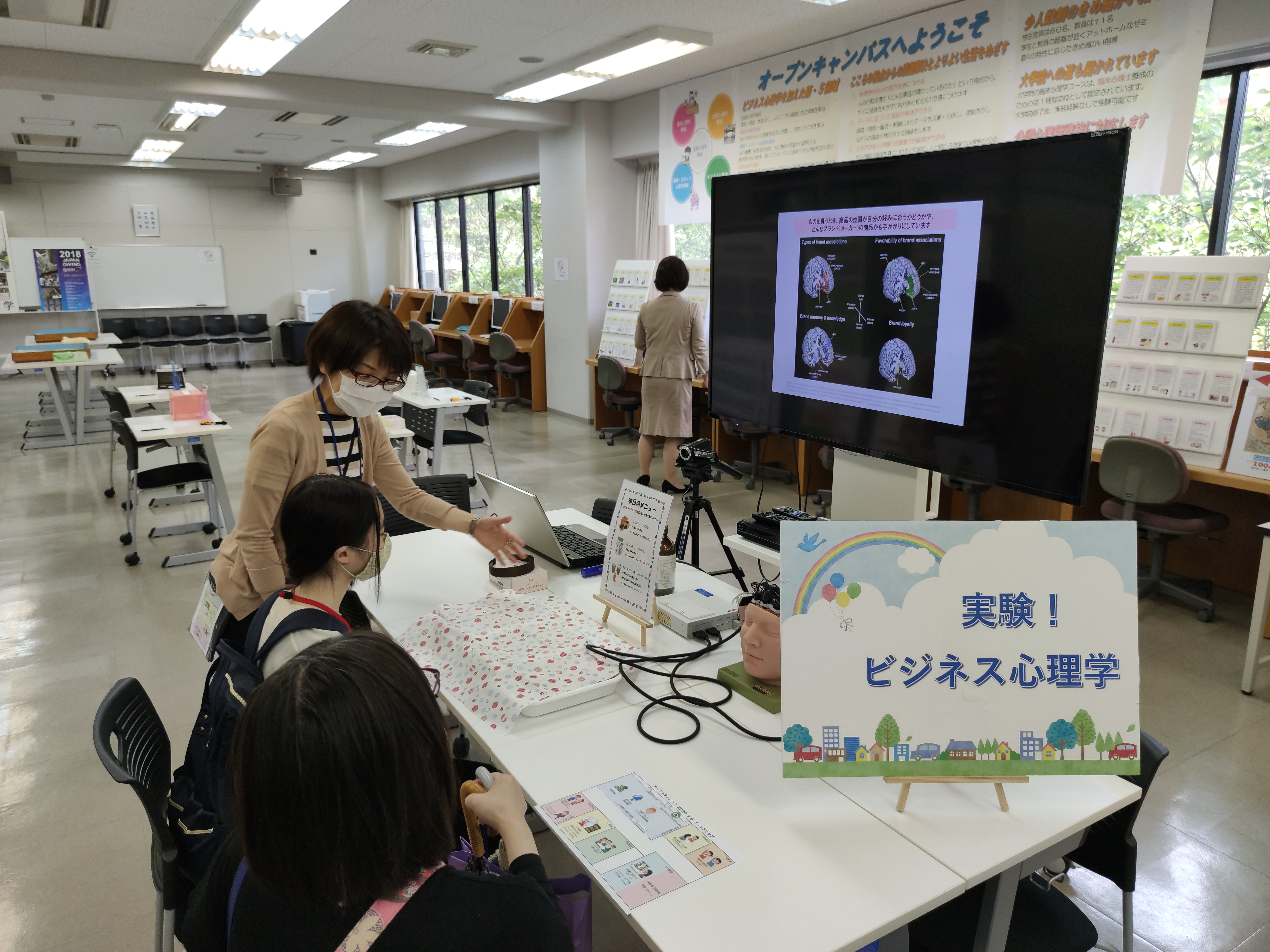 栄養学部は「スポーツ栄養の現場をのぞいてみよう」、「がん細胞・がん研究を見てみよう」、「アントシアニンを使った人工イクラを作ろう」、心理学部は「感染症と心理学」、「NIRSを用いたビジネス心理学実験(商品を見たときの脳の働き)」などのイベントを行いました。
