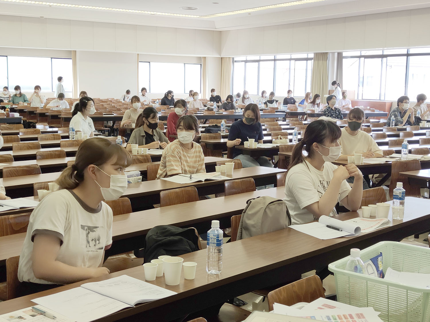 8月4日は、特別講師にも御協力頂き、「口腔機能と誤嚥防止のためのとろみ材」についての実習が行われました。この実習の背景には、加齢や疾病により口腔機能が低下し、食べ物・飲み物がうまく飲み込めない人が多くなっていることや、食べ物がうまく飲み込めずに気管に入ることで誤嚥性肺炎が多発している日本の現状があります。とろみ材は飲み物などにとろみを付けることで誤嚥(飲食物が誤って気管に入ること)を防止するためのものです。これらは国家試験においても頻出の重要事項です。