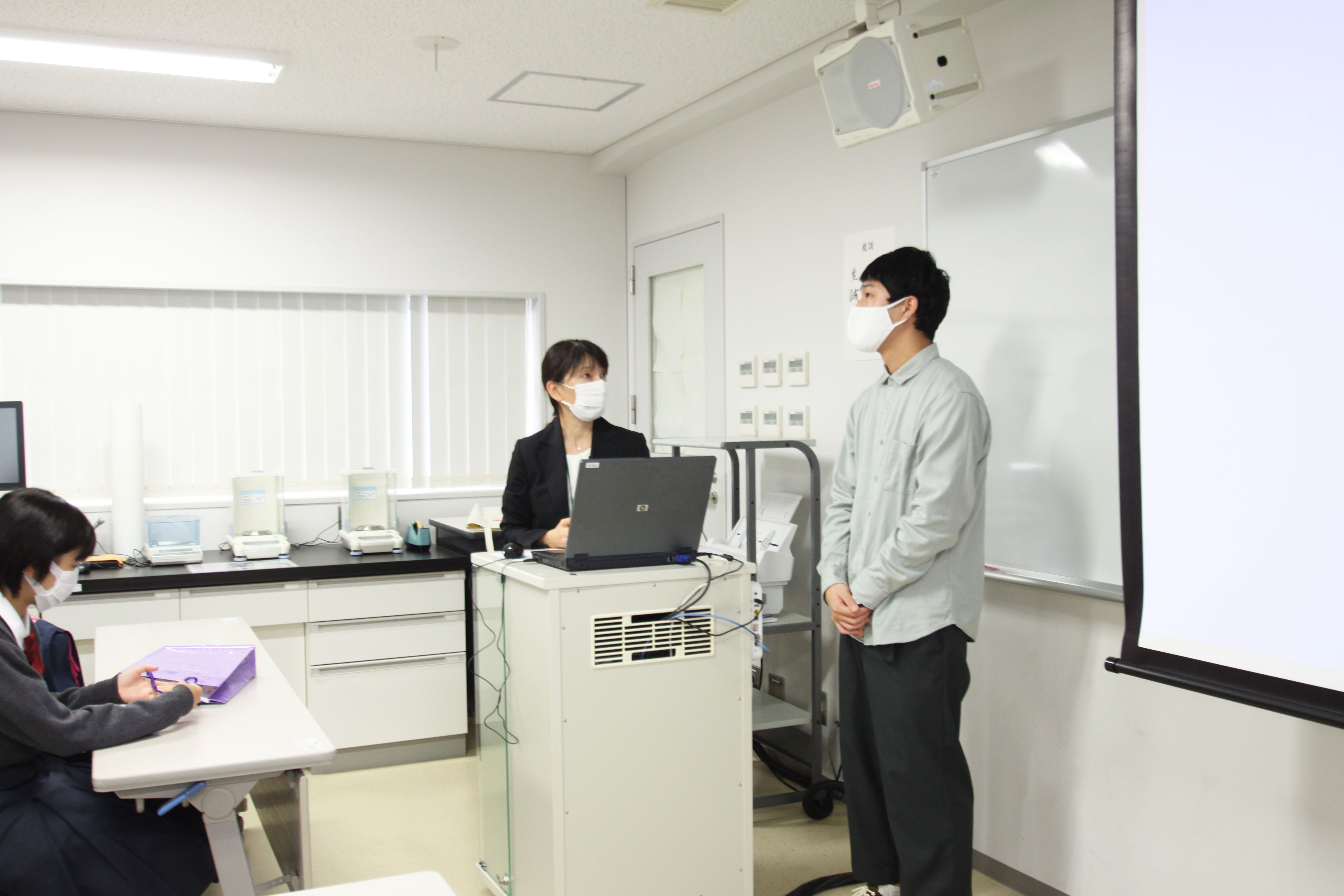 その後、同高校出身の栄養学部栄養学科4回生、野脇京助君の講話や施設見学と続き、正午過ぎには無事散会しました。