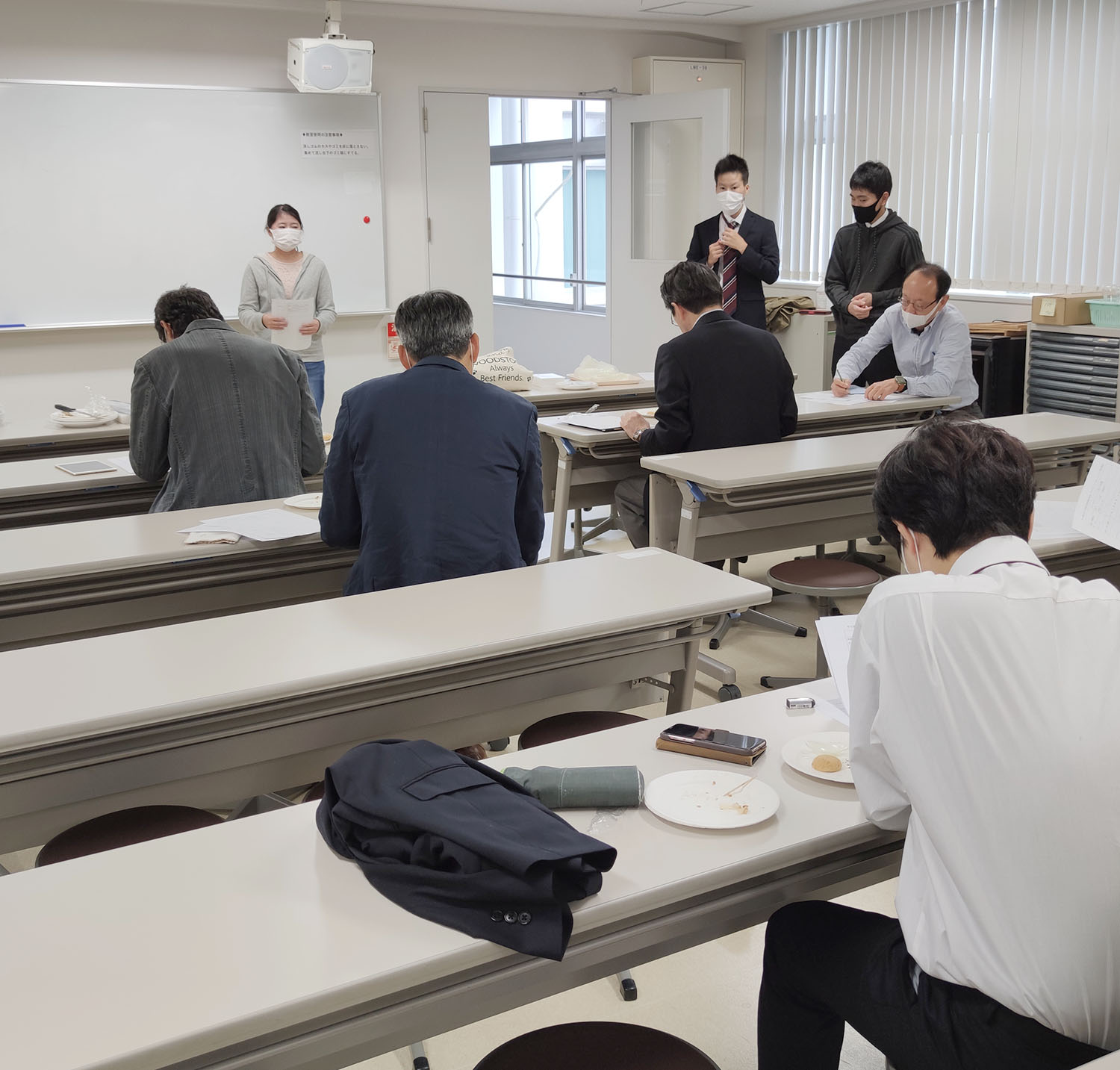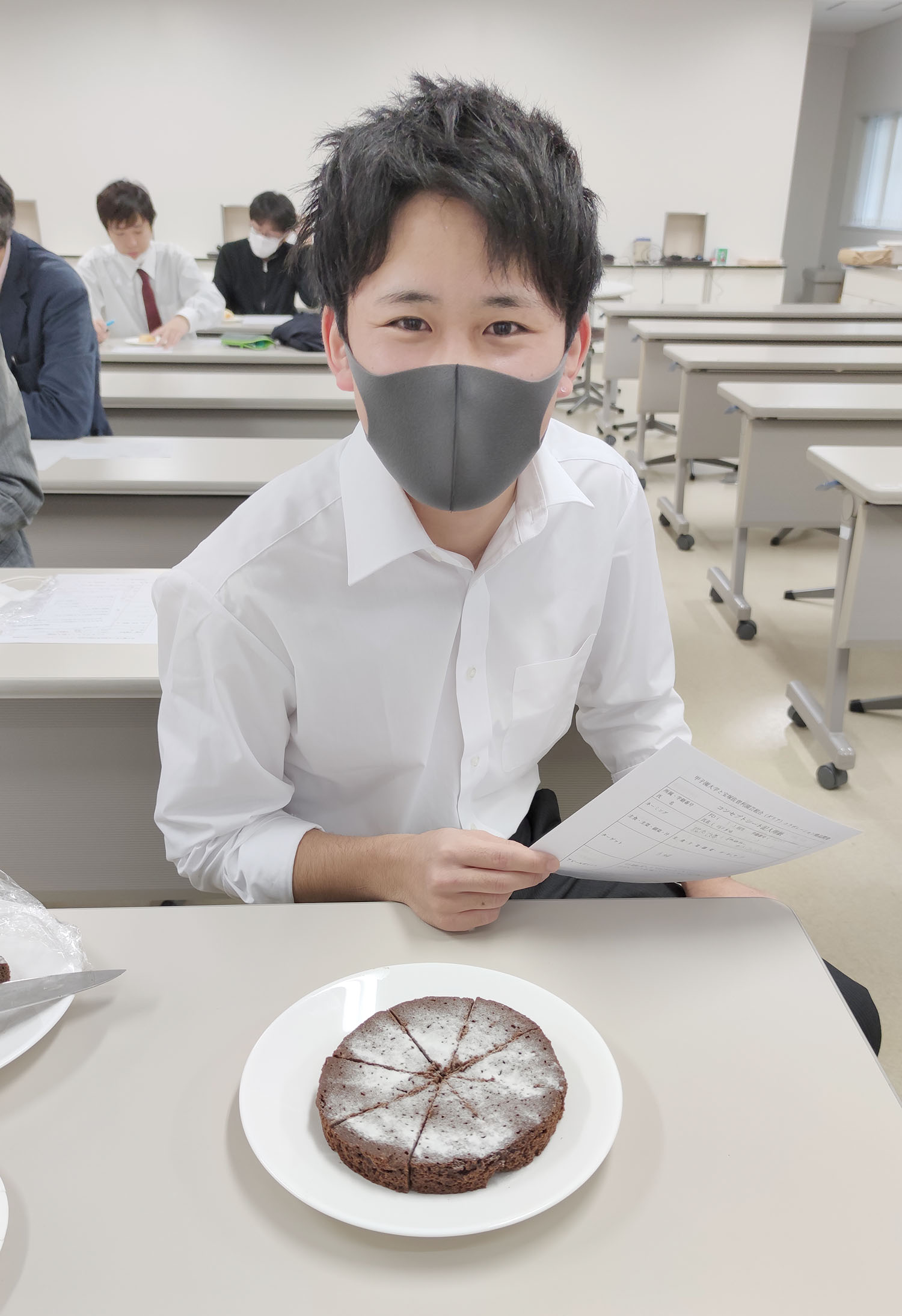 11月11日、栄養学部フードデザイン学科が育てるダリアの粉を用いた、新商品の発表会が開催されました。ダリア栽培は宝塚佐曽利園芸組合と本学の協働プロジェクトの一環として今年度よりスタートしたものです。食と地域の実践演習を履修する学生4グループが、それぞれ新商品の説明をし、皆で試食を行いました。学生は調理法、ターゲット層、アレルゲン、想定販売価格、アピールポイント等について熱く語り、試食をした教員と学生が5段階で評価しました。最高得点を取ったのは堀井和明君(3回生)たちのグループによる「腸内改善!食物繊維入りガトーショコラ」でした。