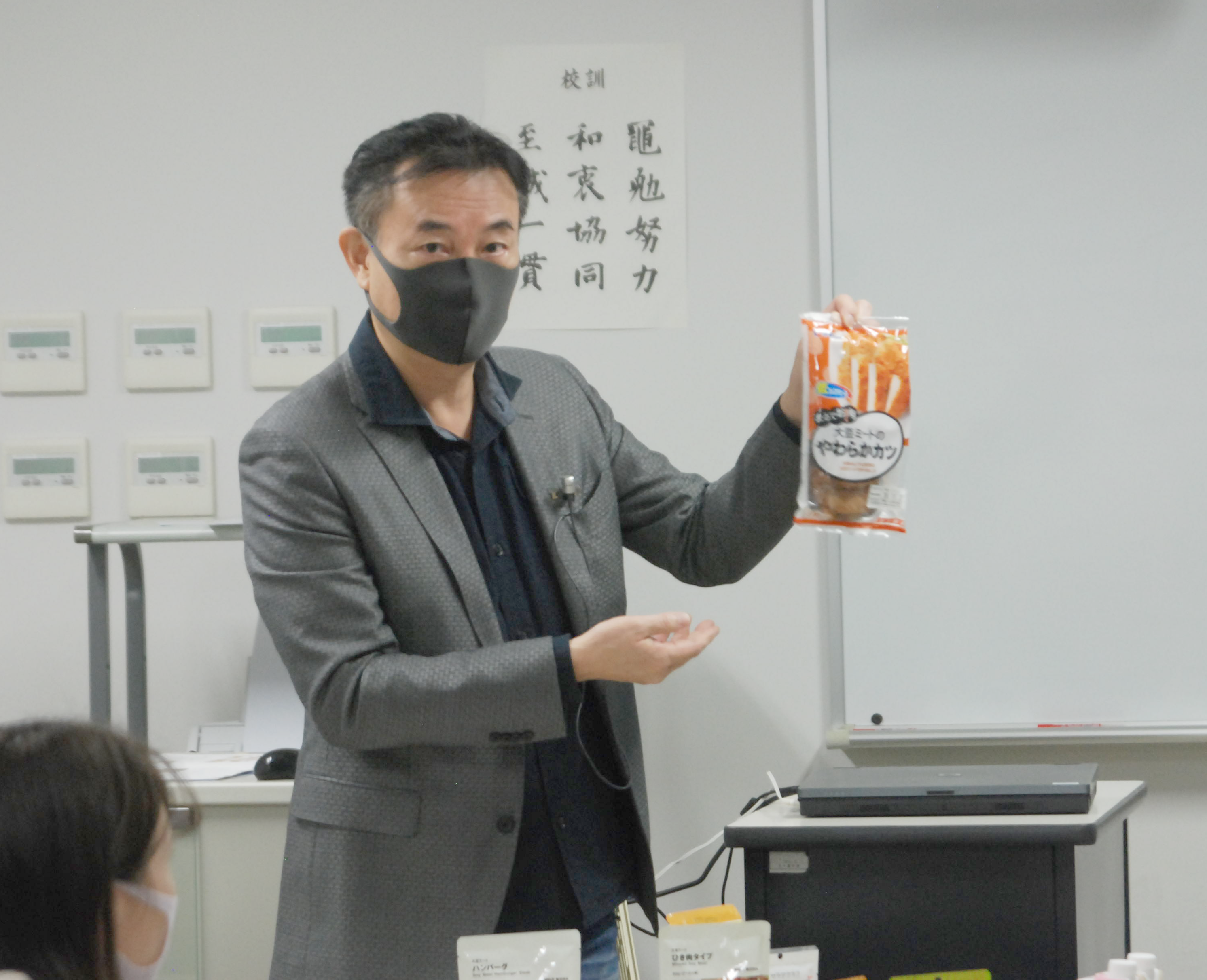 また、同社が開発し、デパートで販売しているお肉そっくりの食品を試食させていただき、学生達はその美味しさに感心していました。