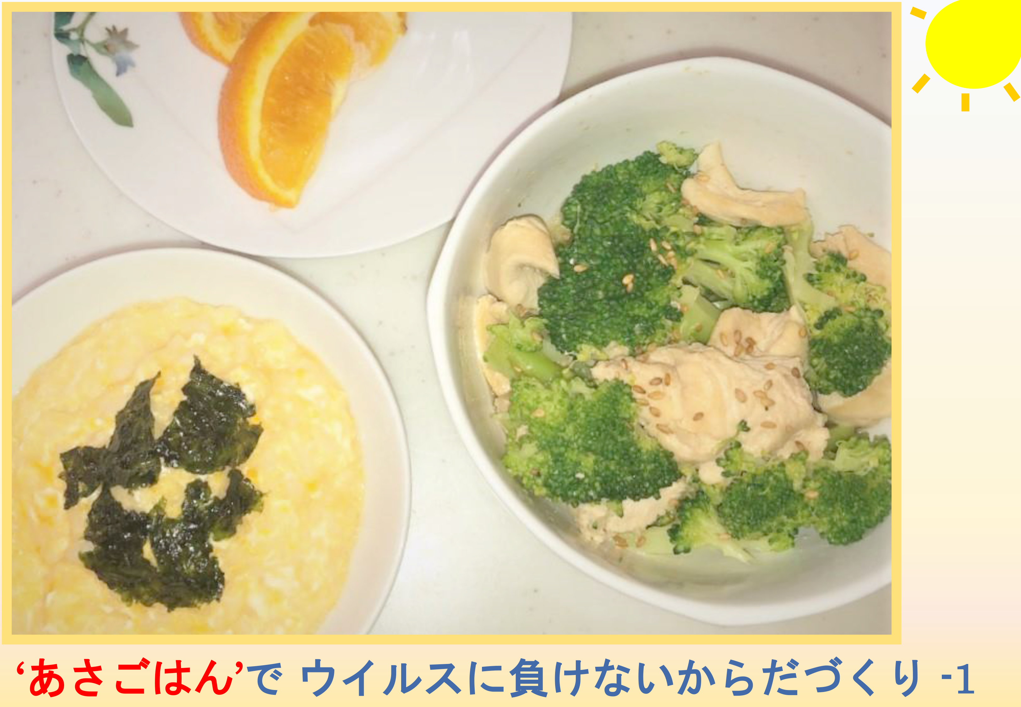 3月に入っても気温が低い毎日がつづきますが、あたたかい朝食をとって活発な一日をスタートさせましょう! 大切な栄養素であるビタミンCと亜鉛(あえん)は、ともにからだの免疫のはたらきを活性化させ、感染の予防にも効果があります。管理栄養士を目指す栄養学科3年生が、ウイルスに負けないための手軽でかんたんな朝ごはんのレシピを発案しましたので紹介します。