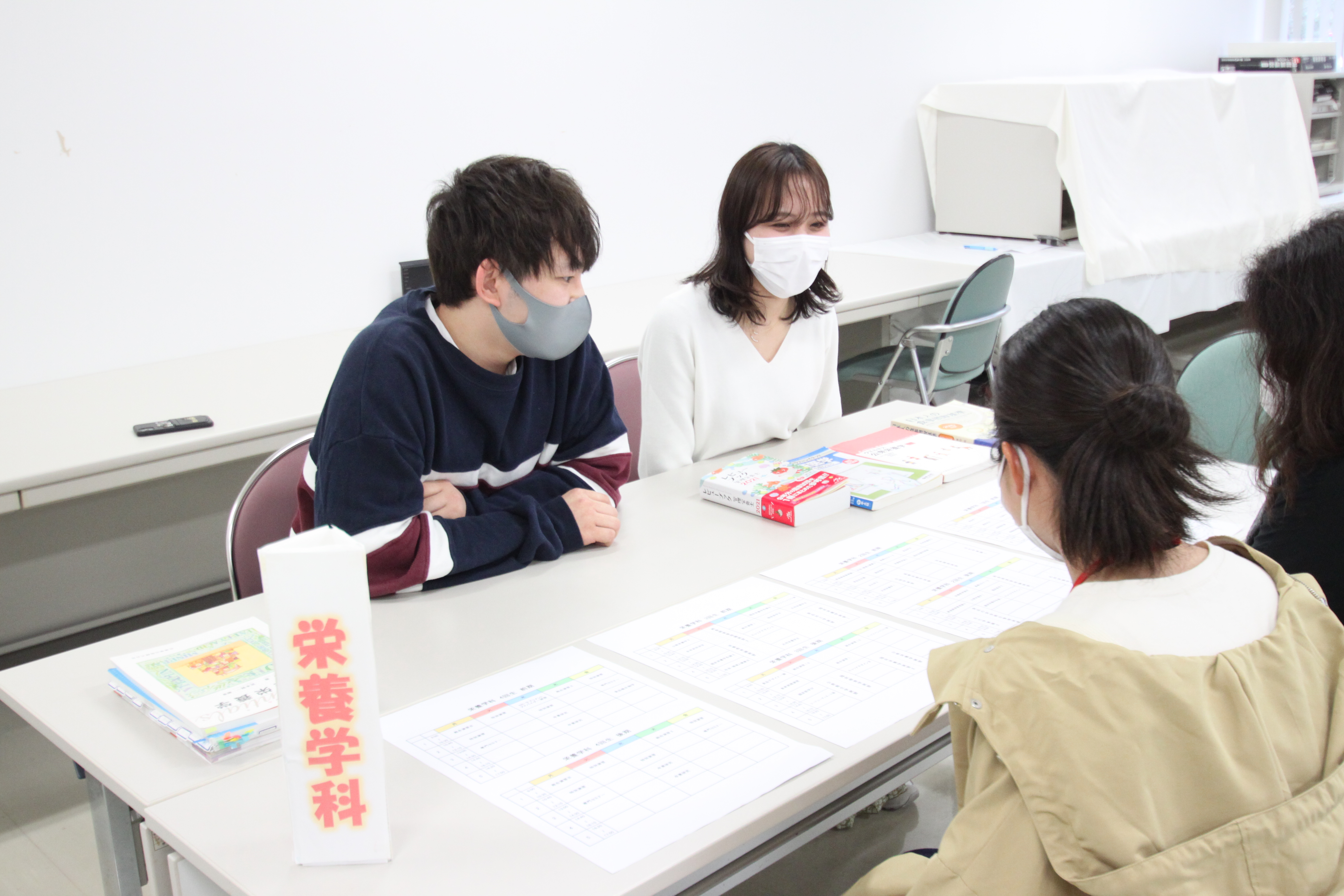 学部学科主催のイベントや、栄養学部総合型入試課題型へのエントリーとそのサポート、入試説明、施設見学、学生生活相談のほか、就職状況、学費、奨学金等々のご質問にも率直にお答えします。