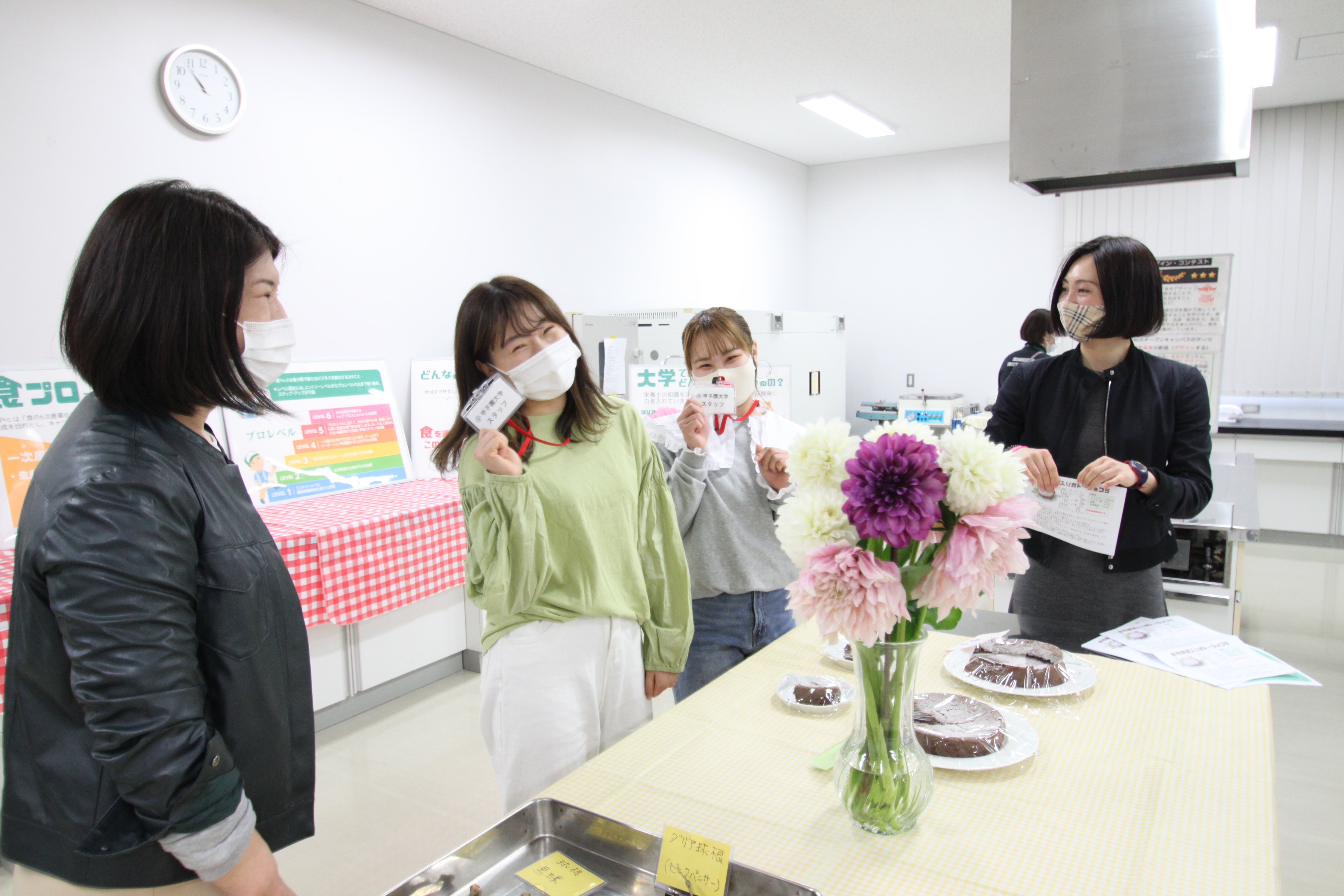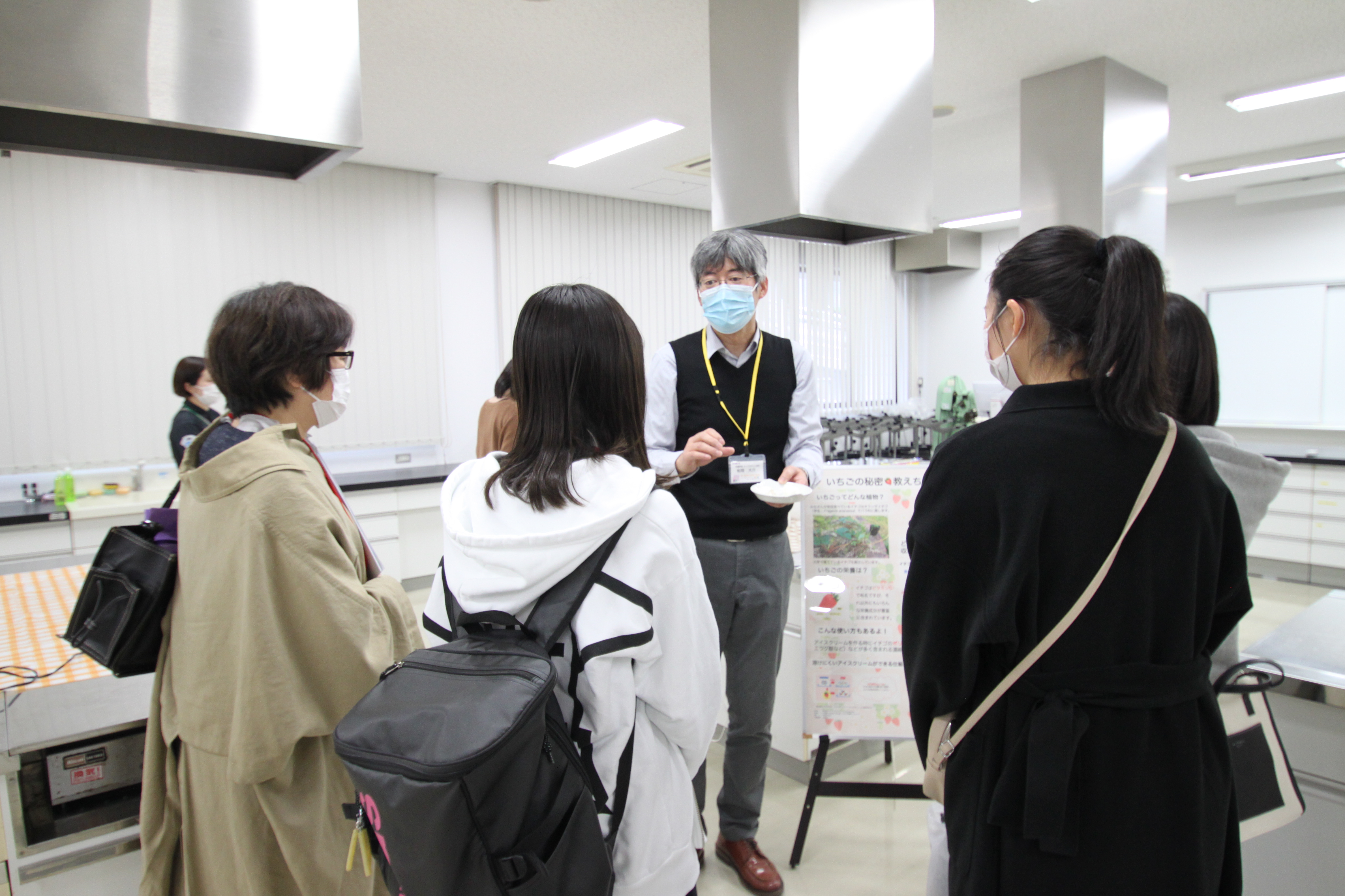 栄養学部は「私、食のプロになる!」のテーマで、管理栄養士、食プロの紹介を中心にフードモデルを使った食事バランスのチェックやいちごポリフェノールに関する実験等を、心理学部は「見えないところが見えてくる!」と題してコロナ禍での心と行動についての解説やスポーツ心理学実験、犯罪心理学クイズ等を実施しました。