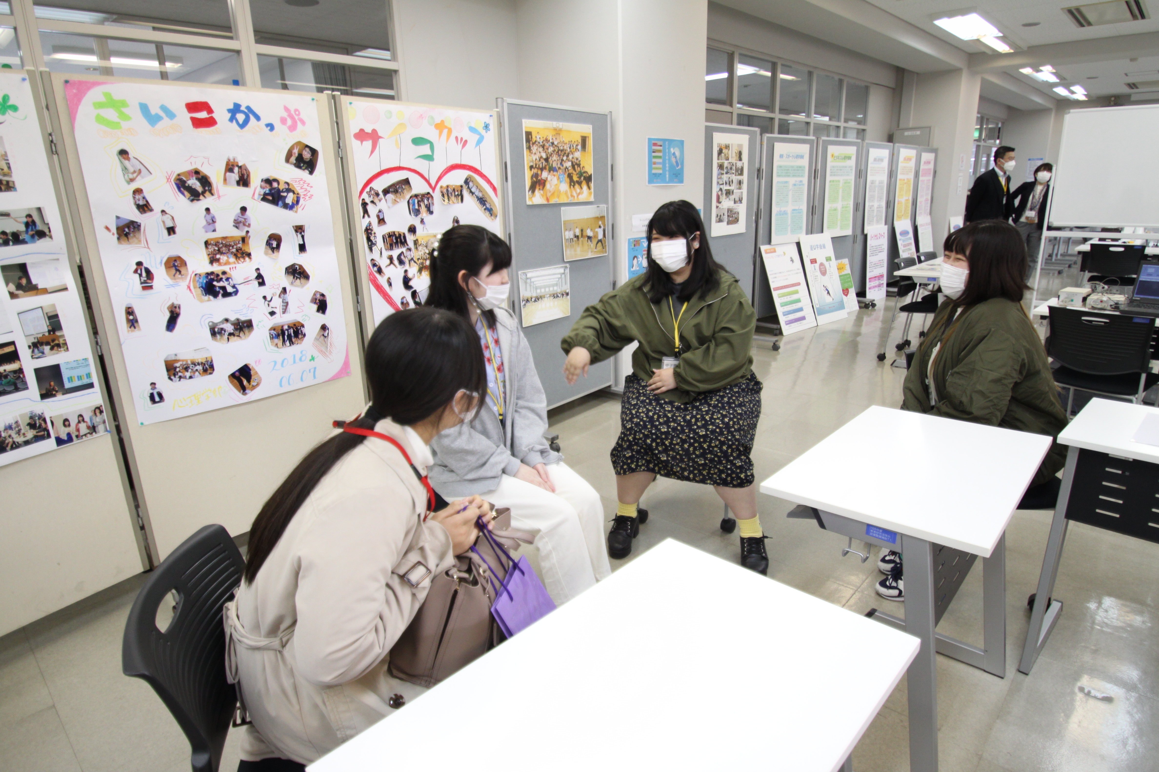 あいにくのお天気でしたが、学生もリモートではなく対面での参加となり、来場者と談笑する姿があちこちで見られました。