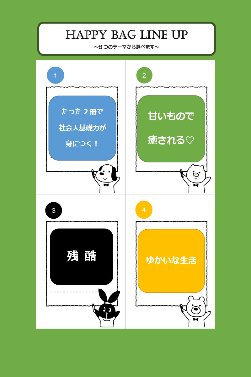 8つのテーマから選んで借りることができます。ぜひご利用ください!